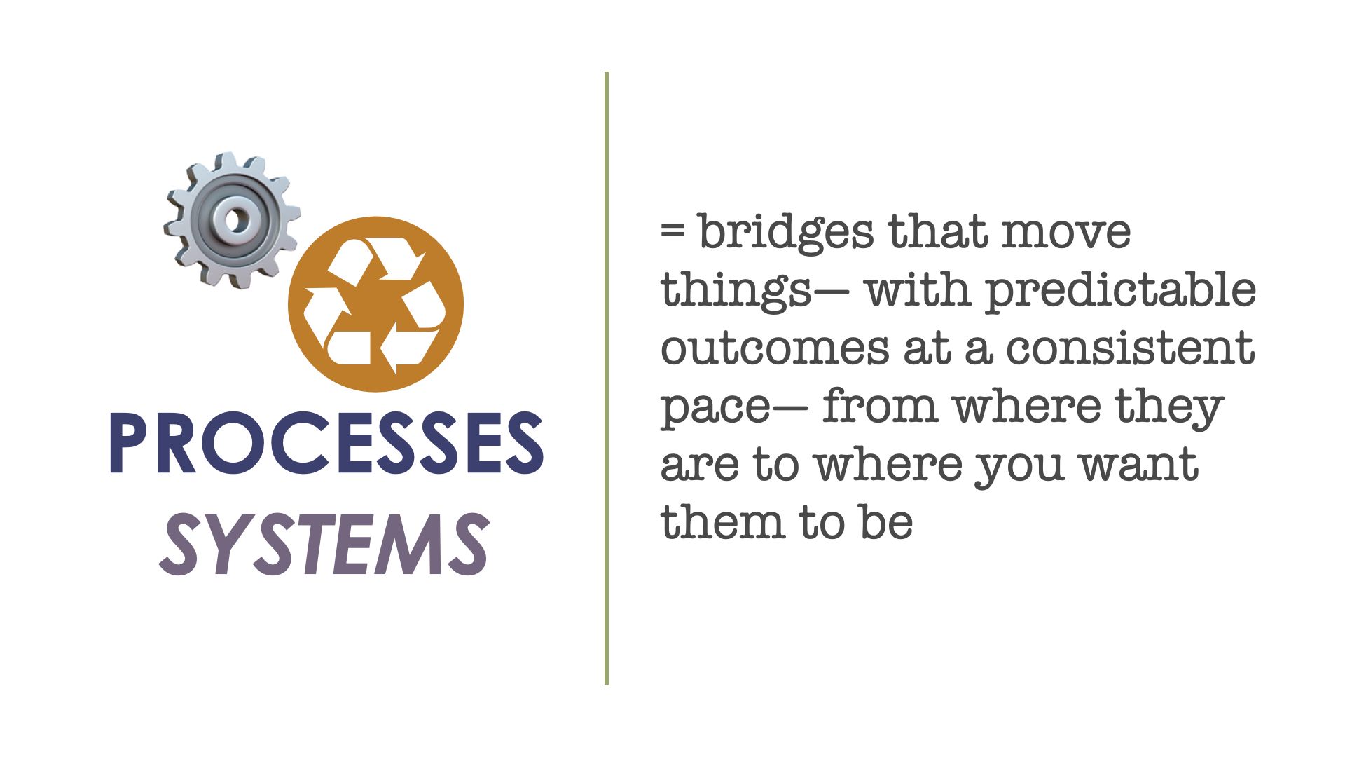 ✅ Systems shouldn't determine your mission (there's almost nothing worse than serving a process for the simple sake of serving the process), but they can accelerate it so that it functions at a higher level.